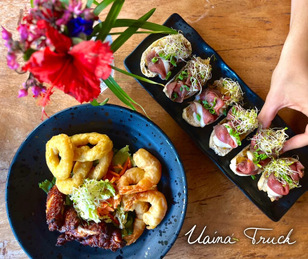 Vous pouvez y trouver le Uaina Truck avec ses tacos incroyables. Le coin restaurant vous accueil avec ses plats incontournables de poissons, viandes et burgers. Un coin tapas très chaleureux. Le tout accompagné d’une belle carte de vins.