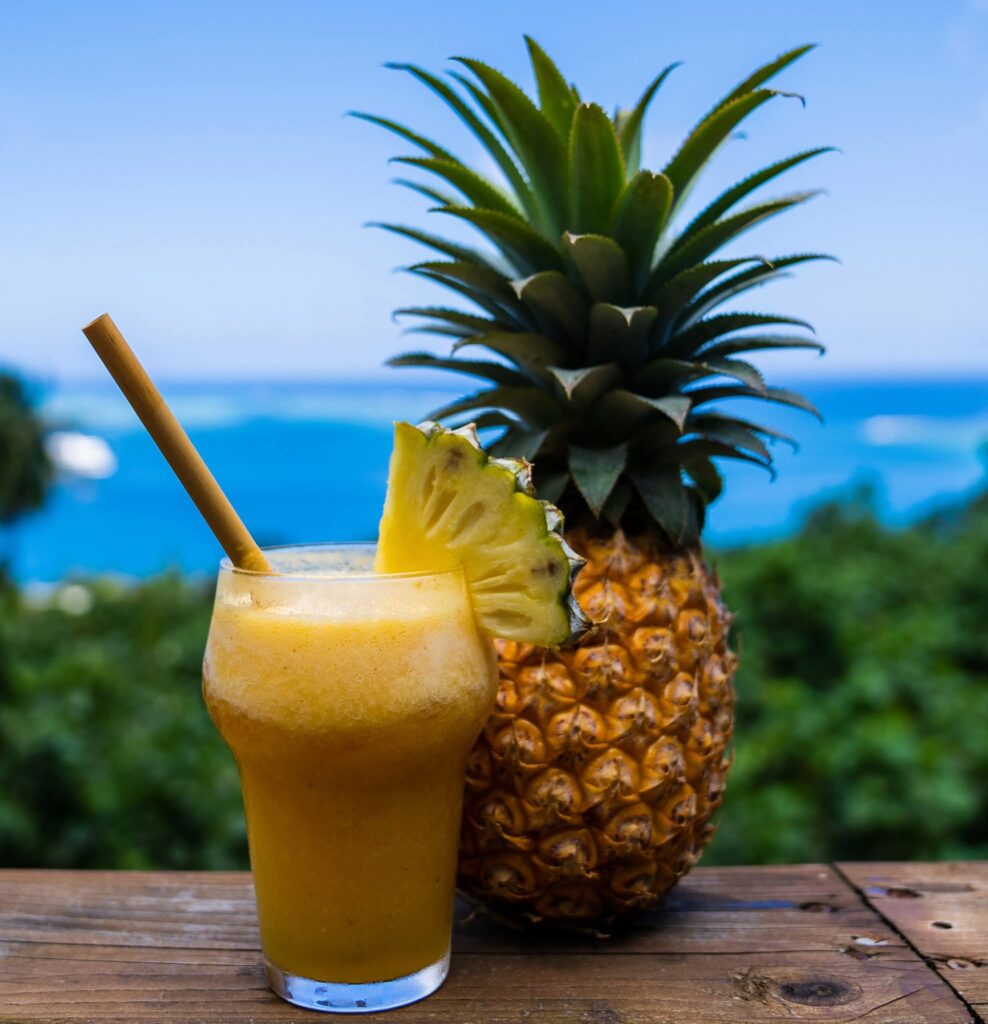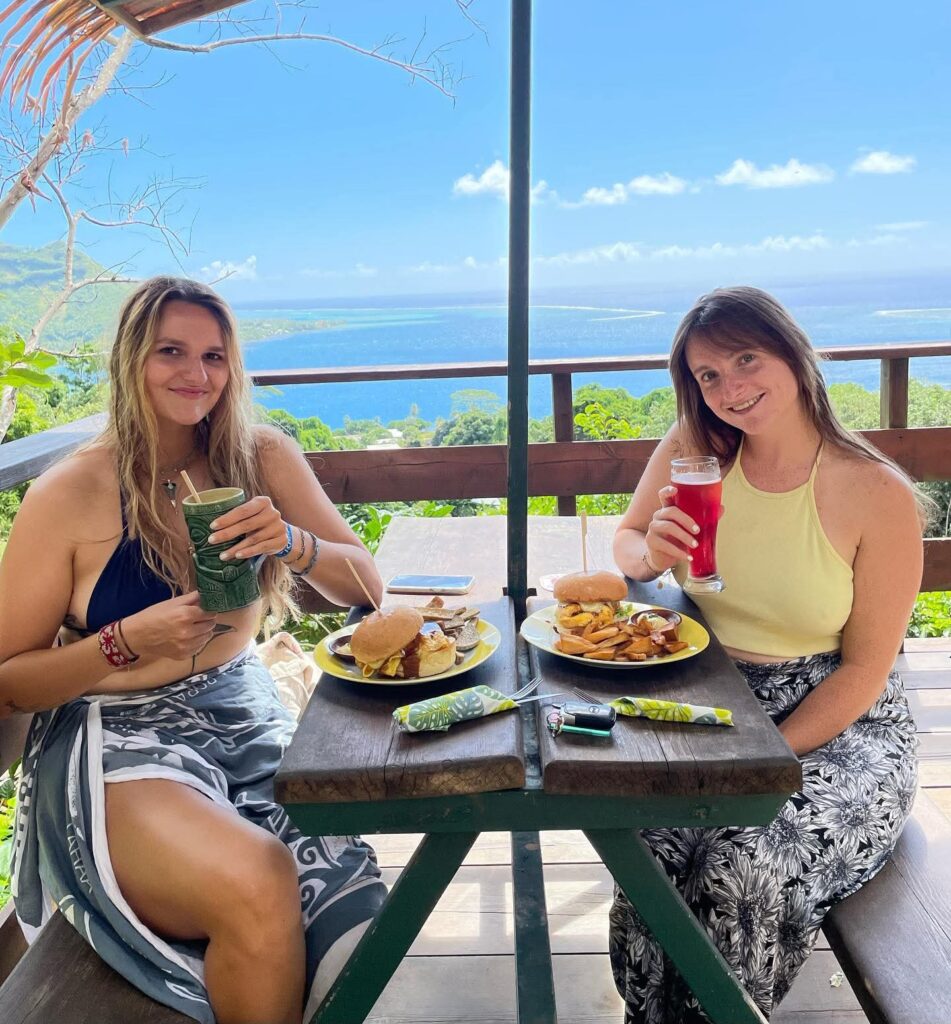 Notre jardin tropical qui surplombe la baie d’Opunohu est l’endroit idéale pour une pause déjeuner.