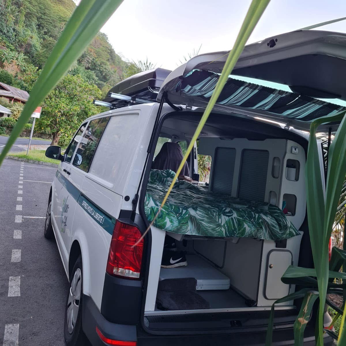 Loue ton van aménagé dans notre agence de Tahiti et pars à la découverte des plus beaux endroits de Tahiti et Moorea en t’arrêtant où bon te semble. Une liste des campings et parkings appropriés est fournie afin de t’aider à composer ton roadtrip en toute liberté.